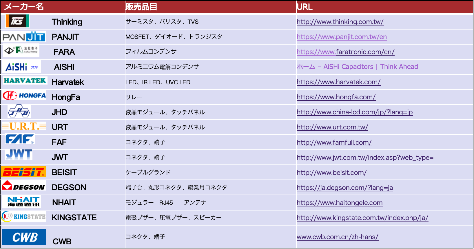 我们公司不仅将中国具有竞争力的制造商产品引入日本市场,同时向中国市场供应日本制造商具有竞争力的电子元件。